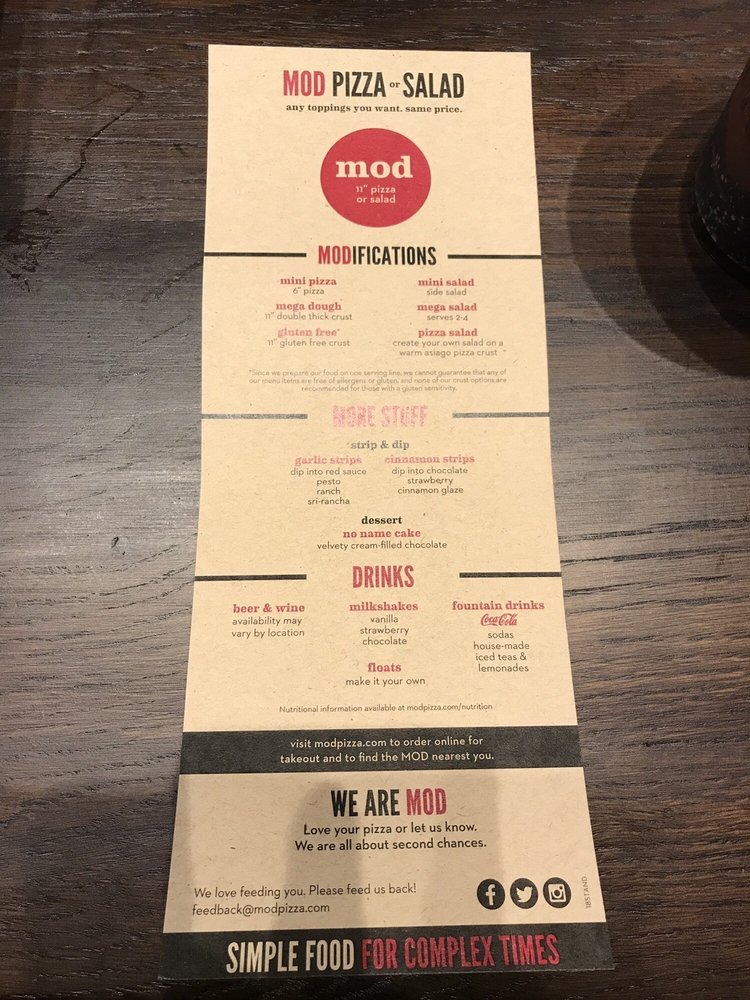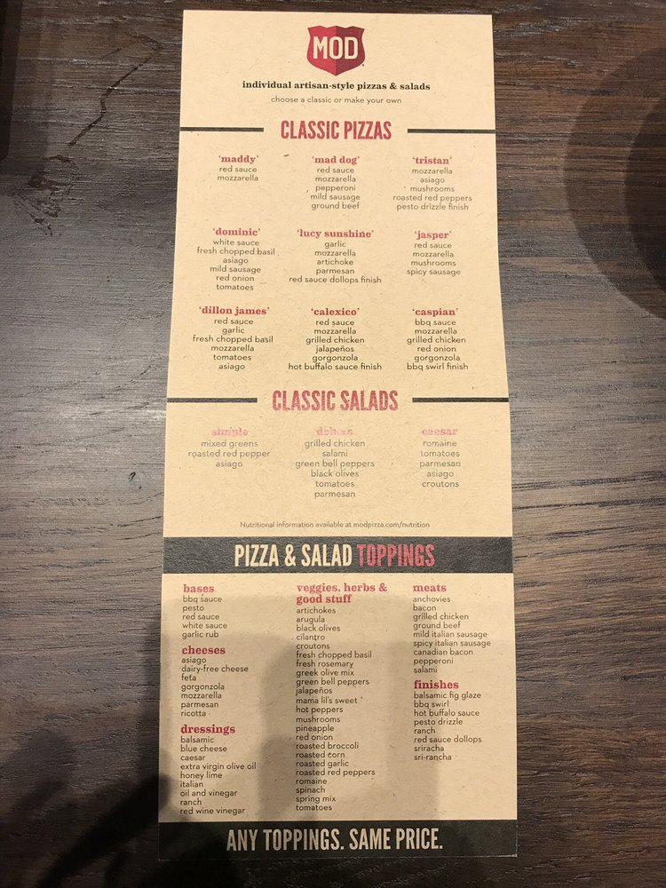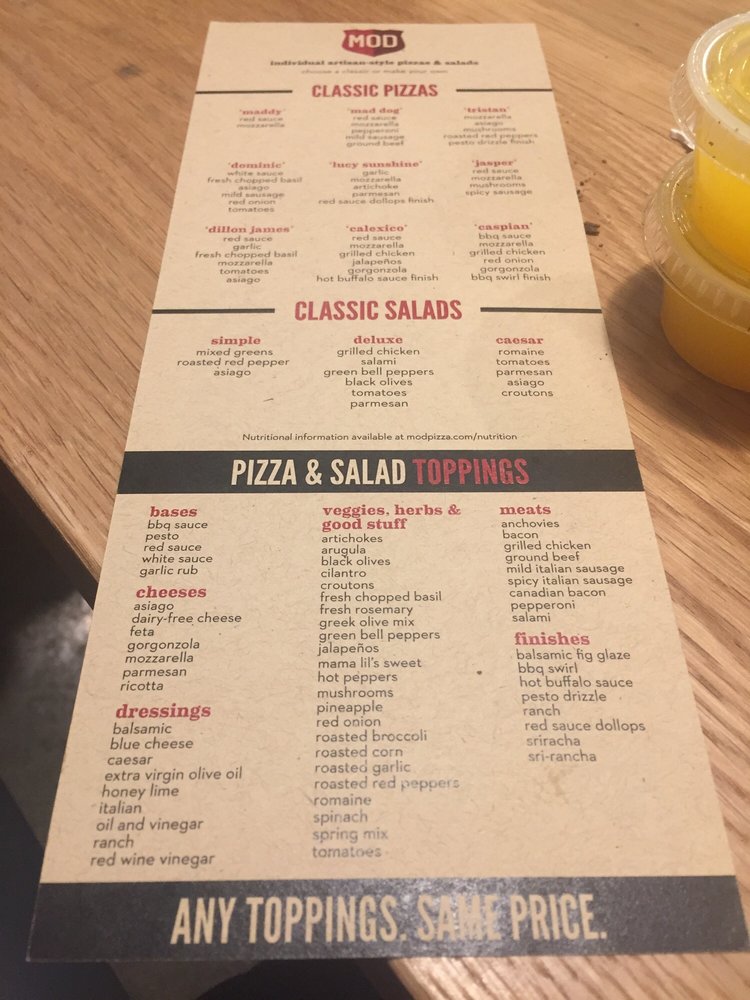 MOD Pizza Woodbridge Menu (Update 2025)